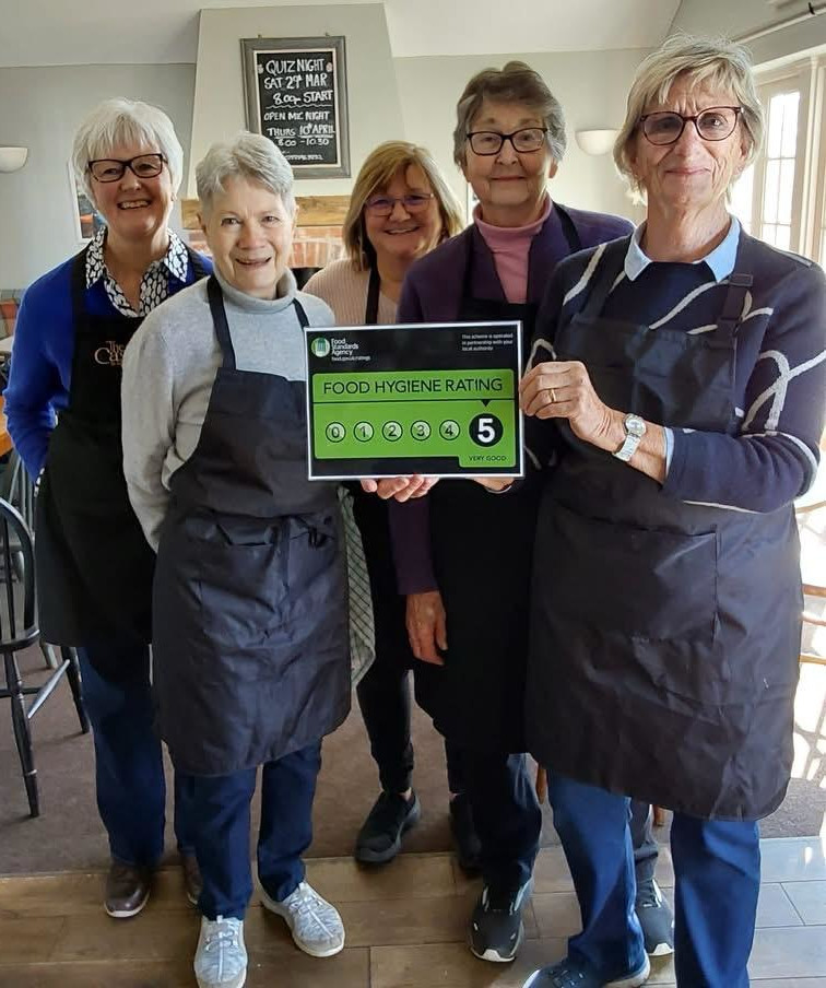 As part of the reopening of our kitchens for our community lunches, we have recently had an inspection from Babergh and Mid Suffolk Councils Food and Hygiene Intervention Department and have been awarded a 5 Star rating. Our maximum risk score was 5 in two areas and 0 in the third – 0 being the best score possible. Our overall rating was described as 5 – Very Good, again this is the maximum level achievable. The same inspector then asked to see the beer cellar. We are again delighted to report that he commented on the cellar as being “one of the best kept cellars he had seen in a very long time” and congratulated the Case on being a “very nice pub”. So thanks to all our wonderful kitchen and cellar volunteers for all their hard work.