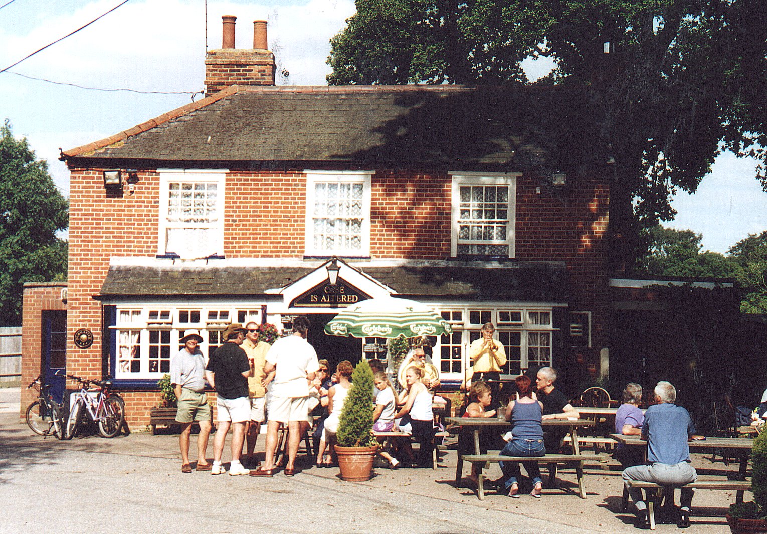 An outside shot of the front of the pub looking very similar to the current pub but without the modern extension. It looks like the front fencing may only just have been fitted. Apparently taken in 2005.