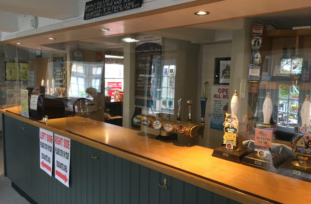 hand sanitizer and cleaning stations around the pub