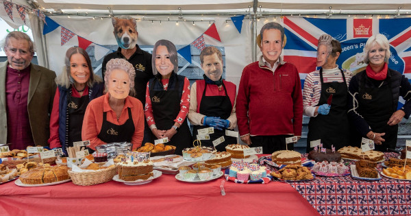 UPDATE 6/6/22: This event raised a total of £575 for St. Elizabeth’s Hospice. Thanks to all who contributed. A wonderful array of cakes was on display and good of the Royal Family to fit in an appearance as well: