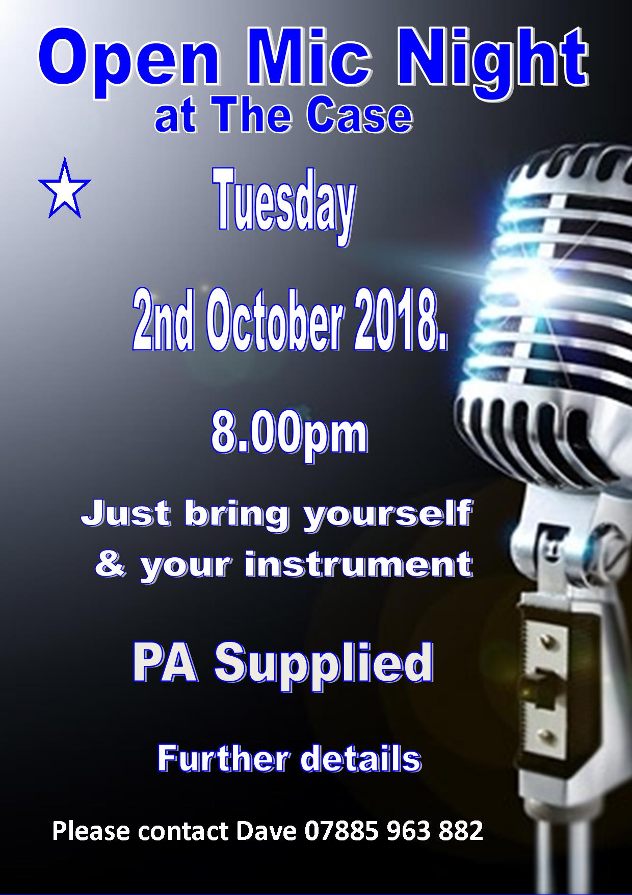 • Next Open Mic Night: 2nd Oct 2018