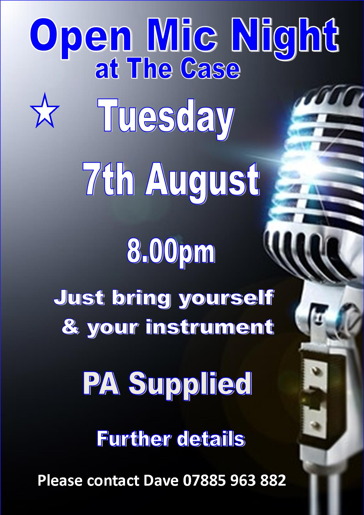 NEXT NIGHT TUESDAY 7th AUG 2018